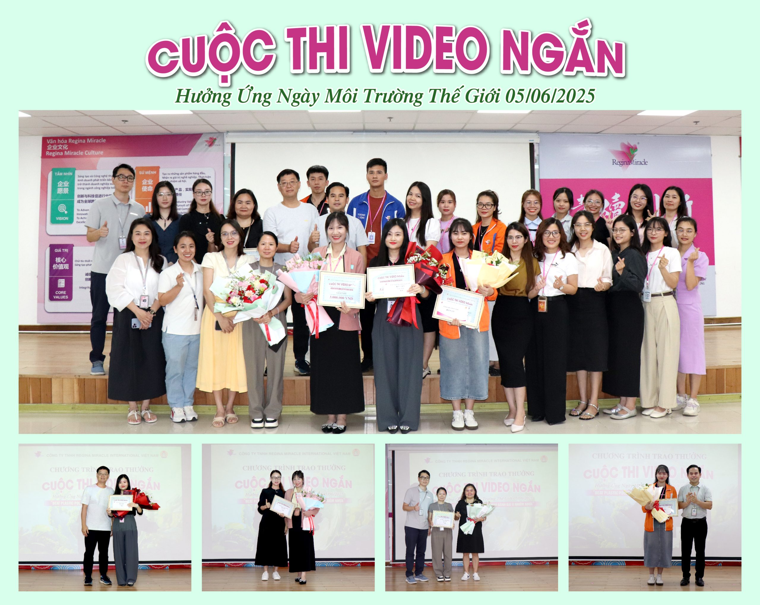 Ngày 05/06/2025 – Ngày Môi trường Thế giới, lễ trao giải cuộc thi video ngắn “Cùng nhau đánh bại ô nhiễm nhựa” đã diễn ra tại công ty Regina Miracle trong không khí vui tươi và tràn đầy năng lượng tích cực.